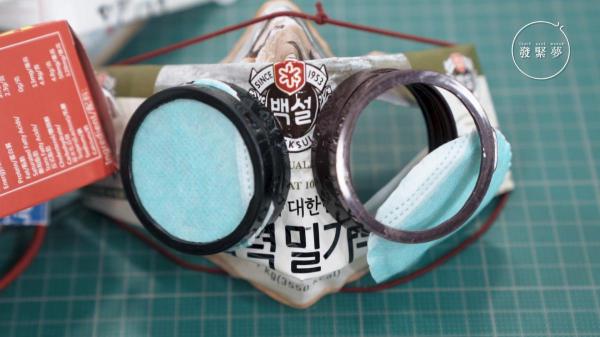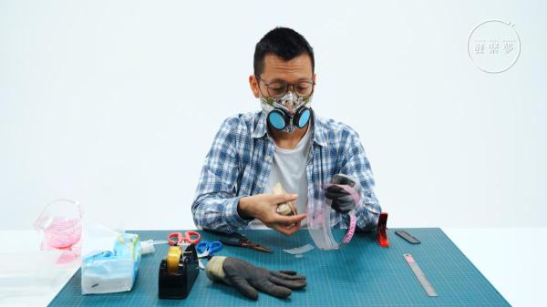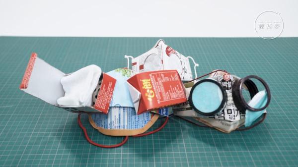 升級再造(upcycling)是把廢物轉成有用,而且具環保價值的物件。阿恆受訪時帶來洗潔精的空樽,他簡單剪幾下,便製成一個「護目鏡」,最適合現時疫情下戴上。事實上早在疫情久久未平復之時,他以口罩為創作重點,「因為我無法製作出濾紙,我是無法製作完完整整的口罩的,我實際上只是製作出『口罩殼』,例如我手頭上的口罩,換氣位置是由外科口罩剪裁出來的,這樣便可以令一個外科口罩用兩日。」