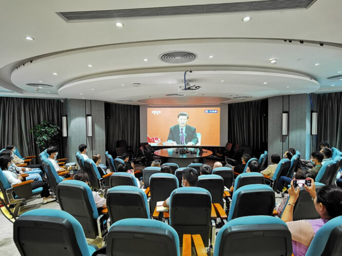 又比如搭建了“園區行業發展論壇”,將走訪企業過程中發現的共性問題,當前國際國內經貿形勢的熱點問題,科技創新、產業融合領域的前沿命題作為主題,邀請頭部企業、行業代表和專家一起,為中小企業加速發展建言獻策,首期《融入“雙循環”激活新動能——深圳外向型企業的內生發展之路》得到了園區120多家企業參與,線上10萬以上人次觀看。