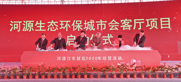 經貿活動上,河源江東新區黨委書記孫宇紅致辭表示,舉辦「12·18」經貿活動,是江東新區貫徹落實廣東省和河源市委、市政府對江東新區的部署要求——奮力打造撬動河源未來城市高質量發展的區域平台,推動河源未來城市發展核心建設的具體行動。江東新區發展勢頭越發強勁,發展動力不斷增強,城市面貌煥然一新。新區始終立足高視野,著眼新發展,以全域協同發展理念,科學謀劃實施「三點三帶四組團」戰略布局,紮實做好城市、功能、產業和江岸「四篇文章」,全力打造樞紐門戶、城市功能、開放合作、內外市場、鄉村振興、綠色發展「六大平台」,經濟社會發展不斷向高質量邁進。