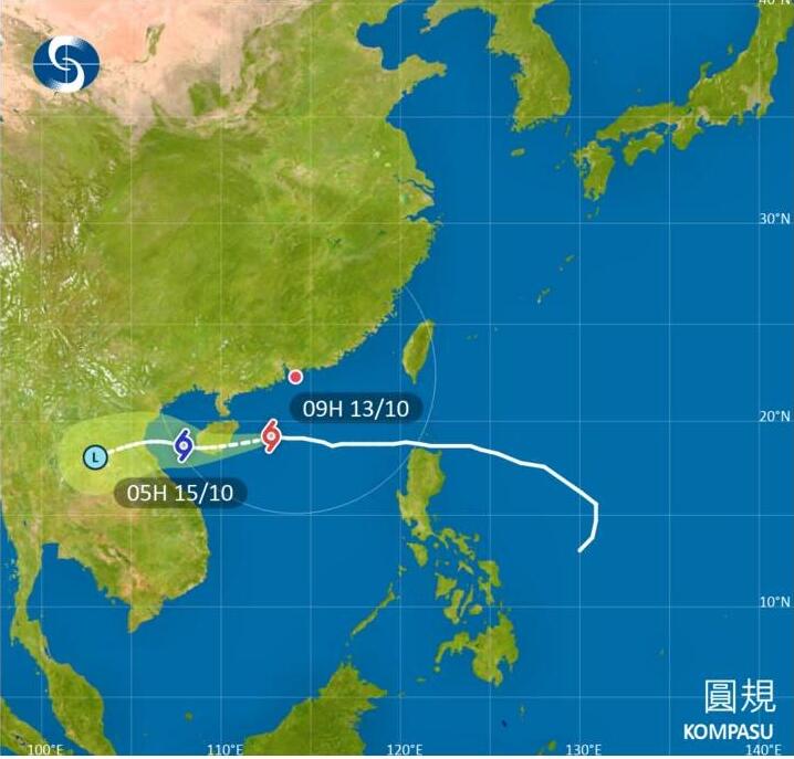 天文台表示,上午9時,颱風圓規集結在香港之西南偏南約370公里,預料向西移動,時速約25公里,橫過南海北部,移向海南島一帶。