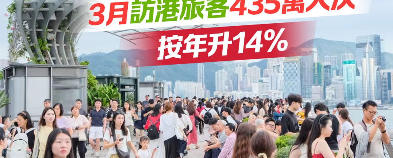 本港首季錄得1431萬人次旅客訪港 按年增17% 內地客增20%