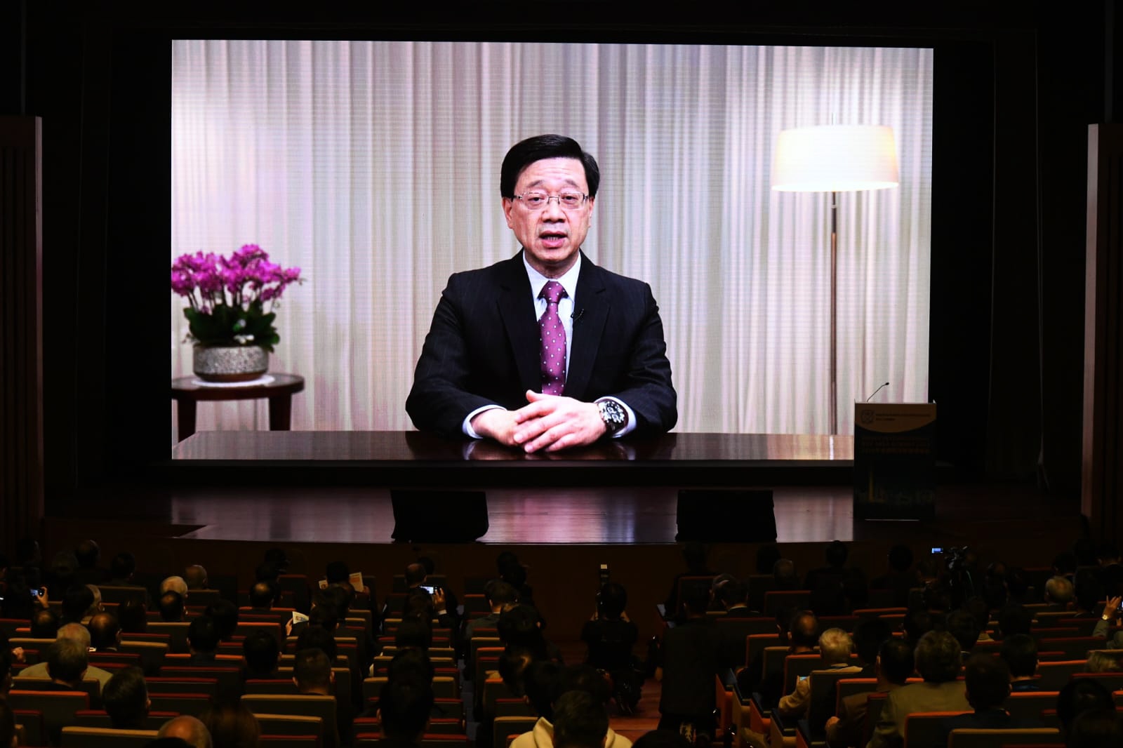 行政長官李家超以視像致開幕辭。蔡啟文攝