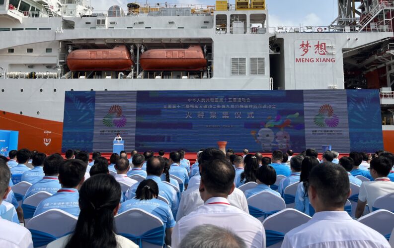 【識港網訊】10月9日上午,位於廣州市南沙區的廣州海洋地質調查局科考碼頭氣氛熱烈。在「夢想」號大洋鑽探船的見證下,第十五屆全國運動會和全國第十二屆殘疾人運動會暨第九屆特殊奧林匹克運動會火種採集儀式舉行。