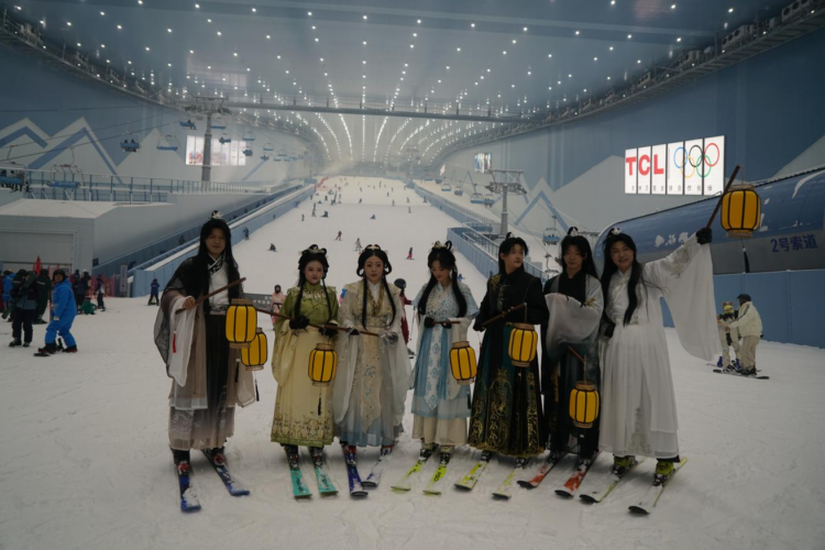 剛剛斬獲健力士世界紀錄「最大的室內滑雪中心」認證的前海冰雪世界滑雪場,中秋期間熱度不減。這座大灣區冰雪新地標,以「熱雪巡禮」系列活動與全齡化體驗場景,讓各地遊客在北緯22度的深圳,體驗到 「冰火兩重天」的度假樂趣。10月6日慶中秋古風滑雪成節日亮點。一隊身穿漢服、手持燈籠的滑雪教練,衣袂飄飄地從雪道上飄飛而下,將傳統美學與冰雪運動巧妙結合。此外,滑雪場特意安排的「奇蹟雪謎會」,也吸引不少滑雪愛好者休閒之餘,在飛雪中猜燈謎度中秋。