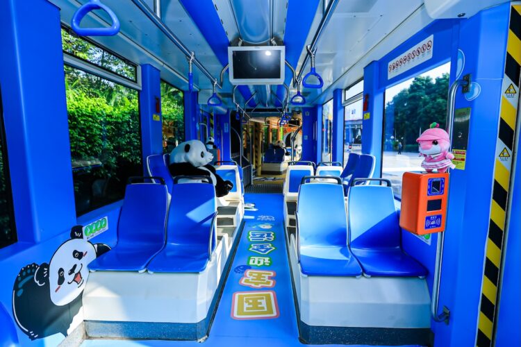 在車廂內部,四隻大熊貓組團「出鏡」,上車刷卡處擺放全運會吉祥物與熊貓玩偶,更有約1米高的熊貓打卡模型,營造出濃厚的「國寶迎全運」互動氛圍。據悉,「廣動號」大熊貓主題有軌電車將持續運營至十五運會和殘特奧會結束。