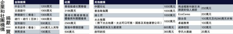 另外,飛達帽業將向政府援助基金捐獻100萬元;全國政協委員、飛達帽業副主席兼董事總經理顏寶鈴將會個人捐款100萬元,當中50萬元捐獻予政府援助基金,50萬元捐獻予消防局基金;透過新界鄉議局捐10萬元、保良局壬子會捐10萬元、中華總商會捐10萬元、港區婦聯捐2萬元;共捐232萬元。