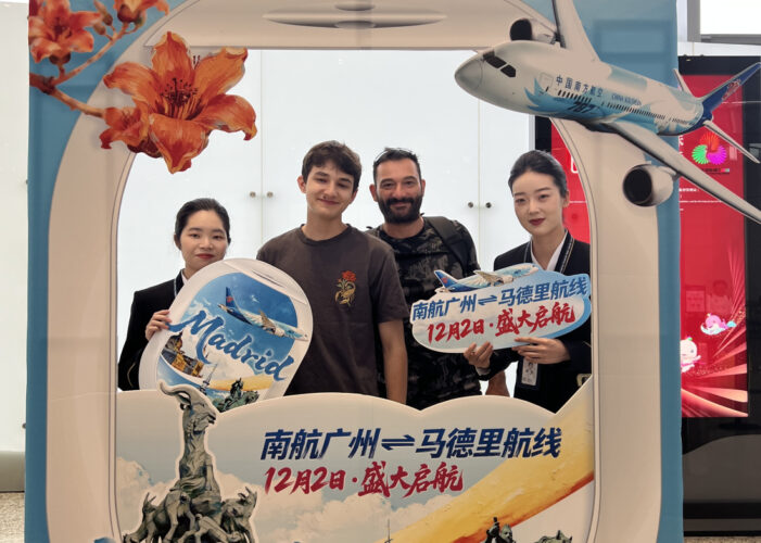 【識港網訊】12月2日上午,南方航空在廣州白雲國際機場成功舉辦廣州-馬德里首航儀式,標誌着廣州-馬德里直飛航線正式開通。作為廣州地區首條連接伊比利亞半島的直飛航線,此舉不僅填補了兩地直航空白、架起了中歐空中新橋樑,更是南航服務新時代高水平對外開放的又一重大舉措。