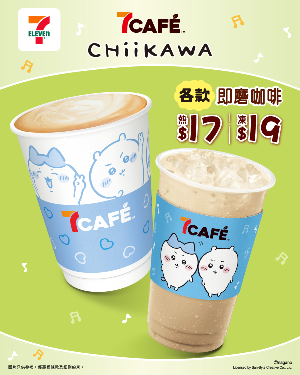 由即日起,嚟7CAFÉ買各款凍熱即磨咖啡就可以擁有Chiikawa限定熱飲杯/凍飲杯套,數量有限,粉絲行動要快啲喇!