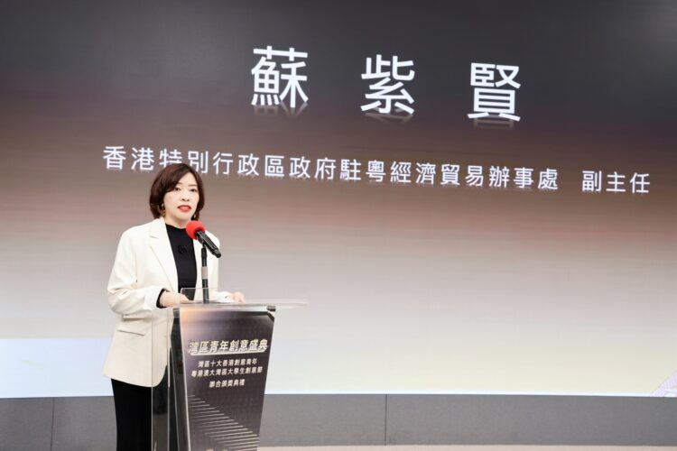 香港特別行政區政府駐粵經濟貿易辦事處副主任蘇紫賢在致辭中表示,近年來,駐粵辦持續為香港青年搭建交流與展示平台,「灣區十大香港創意青年」的多賽道評選,正是積極響應國家「十五五」規劃關於支持青年科技人才創新創業部署的生動實踐,期待獲獎者發揮香港「超級聯繫人」與「超級增值人」的角色,帶動更多香港青年北上逐夢。