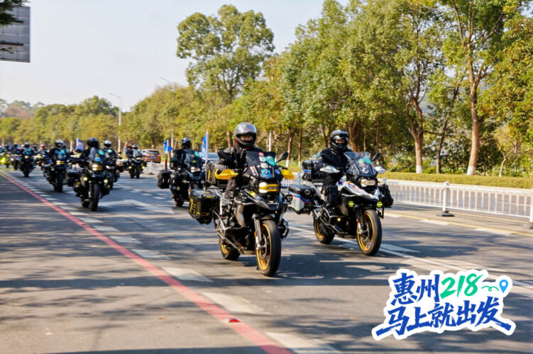 啟動儀式上,車隊授旗環節為「機車車隊」、「品牌車企車隊」、「港澳『南車北上』車隊」、「惠州企業車隊」及「旅行商車隊」等自駕車友代表授發車旗。此舉以「旗幟」為象徵,傳遞「政企商協同、粵港澳聯動」的活動內涵。現場約150台來自粵港澳大灣區的機車與汽車整齊排列,隨着發令鳴笛與彩煙升起,自駕車隊按既定線路有序出發,開啟「挑戰惠州218」活動。