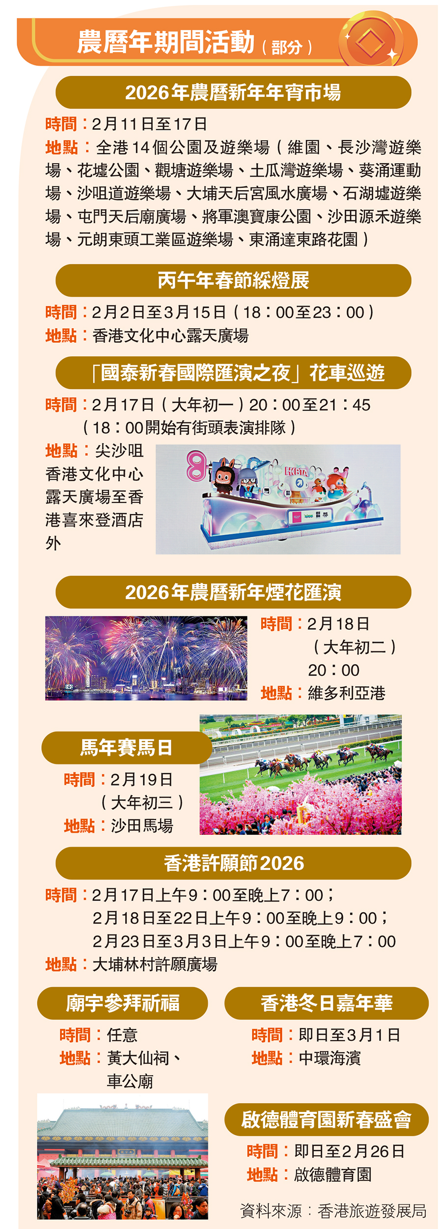 【識港網訊】農曆新年將至,預料香港將迎來農曆黃金周旅客潮。本港農曆新年期間將舉辦多項節慶活動,不少市民和遊客認為活動有吸引力;有市民有意留港度歲,有旅客則計劃延長遊港時間。