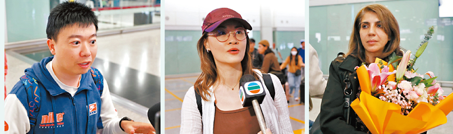 【識港網訊】隨着迪拜機場逐步恢復有限度運作,復飛後首班直航機昨晚抵港,大批一度滯留當地的旅客包括本港旅行團、港隊女足和賽駒「昇瀧駒」團隊等終於「回家」。香港國際機場入境大堂昨晚到處上演一家團圓、禁不住相擁而泣的動人場面,從未與戰火如斯接近的港人,重返香港的一刻,熱淚盈眶向香港文匯報記者表示:「非常之開心,我真係好開心返到來,香港係最安全嘅。」亦有接機的家屬表示,過去幾天忐忑不安,無時無刻都在擔心在中東家人的安危,「終於平安回來,放下心頭大石。」入境處表示,截至昨午5時,共接獲約680名身在當地的港人查詢,包括最新航班及行程安排。當中約100人已安全離開當地,其餘查詢港人均報稱身處安全地方。