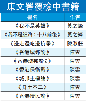 前香港眾志秘書長黃之鋒、公民黨立法會議員陳淑莊及嶺南大學中文系前助理教授陳雲分別著作的9本書籍,暫時無法在全港公共圖書館借閱。